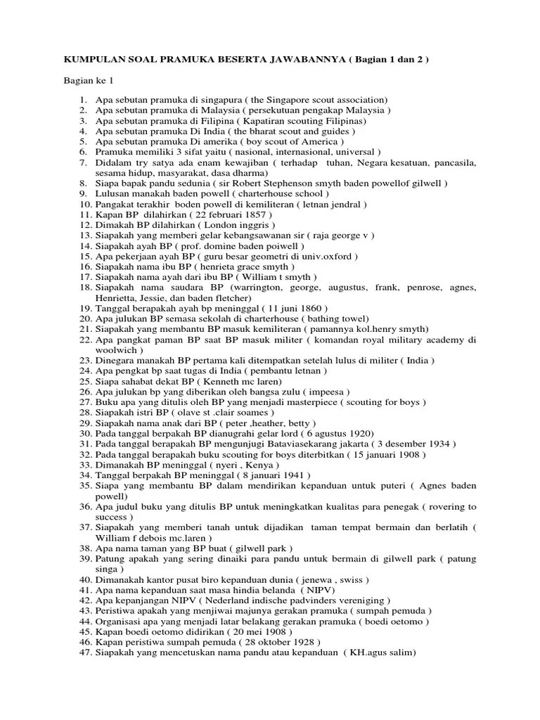 Soal Pramuka Penggalang Pilihan Ganda Dan Kunci Jawaban / Matematika 120 Menit 40 Butir Pilihan Ganda Suatu Kegiatan Pramuka Diikuti Oleh 50 Murid Regu Pramuka Yang Dapat Dibentuk A B Pdf Download Gratis - Download contoh 100 soal dan kunci jawaban ukg guru paud tk ra doc guru belajar blog.